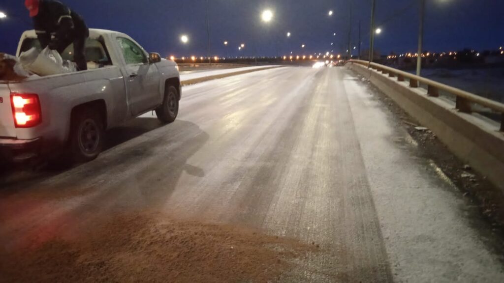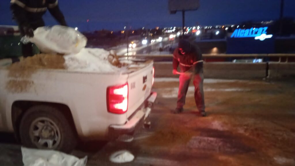 De igual manera se informa que ya se efectúa el esparcimiento de arena y sal para mejorar las condiciones de las vialidades y evitar percances.