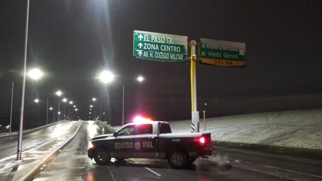 CD. JUAREZ, CHIH.- La Coordinación General de Seguridad Vial exhorta a la ciudadanía a conducir con precaución ante la presencia de nieve y congelamiento en diferentes vialidades.