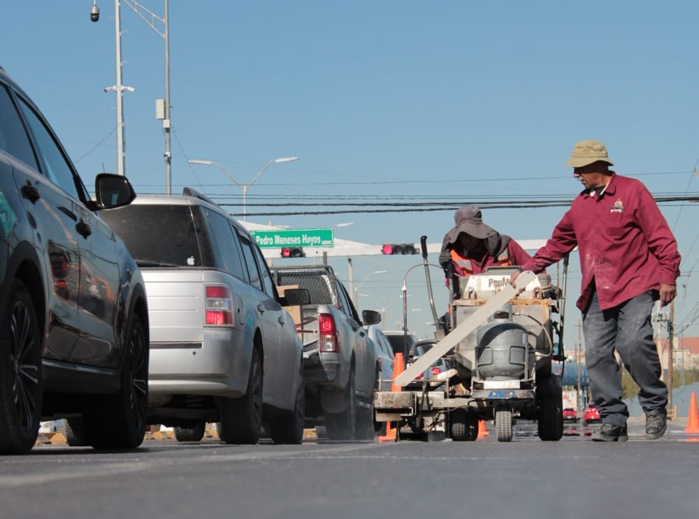 CD. JUAREZ, CHIH.- La Coordinación General de Seguridad Vial realizó trabajos de pintura para la división de carriles sobre la avenida Tecnológico, en el tramo comprendido desde calle Loma Azul hasta la Pedro Meneses Hoyos.