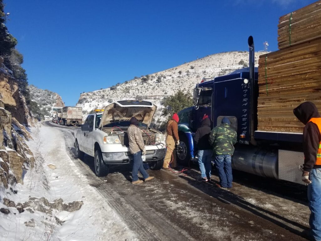 Protección Civil de Janos y de Agua Prieta, Sonora, se han coordinado para trabajar en conjunto, especialmente en la vigilancia y trabajos de despeje del tramo conocido como puerto San Luis, el cual fue abierto a la circulación luego de ser cerrado desde las 18:00 del lunes 13 de febrero, por el congelamiento de la cinta asfáltica.