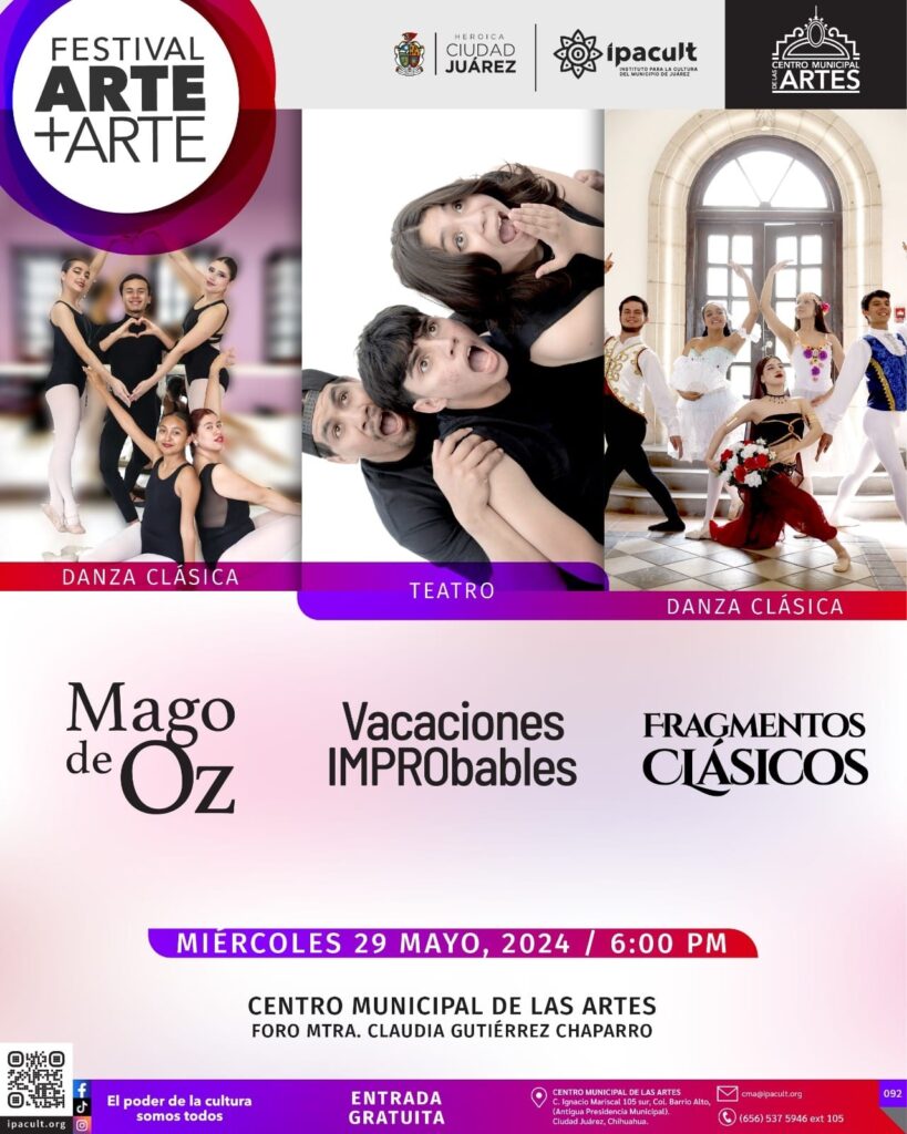 CD. JUAREZ, CHIH.- Las actividades continúan en el Foro Claudia Gutiérrez del Centro Municipal de las Artes con las presentaciones de las y los alumnos de las carreras técnicas profesionales en danza, teatro, música y artes plásticas.