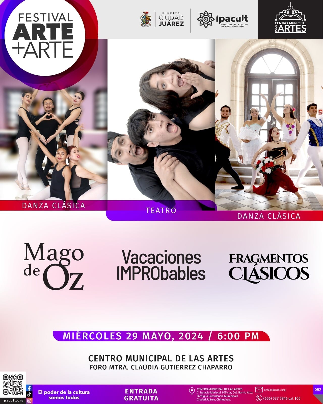 Si quieres conocer la cartelera completa la puedes consultar en la página www.ipacult.org así como en las redes sociales del instituto en Facebook, Instagram y TikTok del instituto.