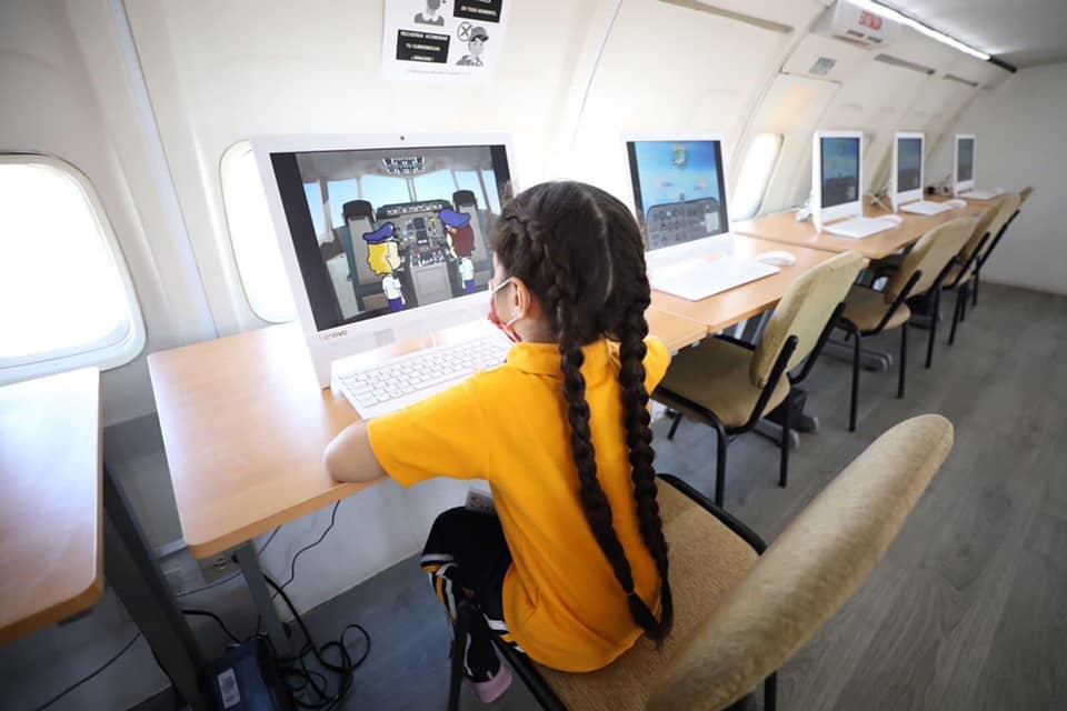 El Biblioavión es un Boeing 737 serie 300 que es usado como un espacio de aprendizaje, ya que cuenta con libros digitales y videos de aviación, además los niños pueden ingresar a la cabina y tomarse fotografías, mientras que el capitán de la aeronave, Francisco Yarza Sámano, se encarga de darles una plática y recorrido por el lugar.