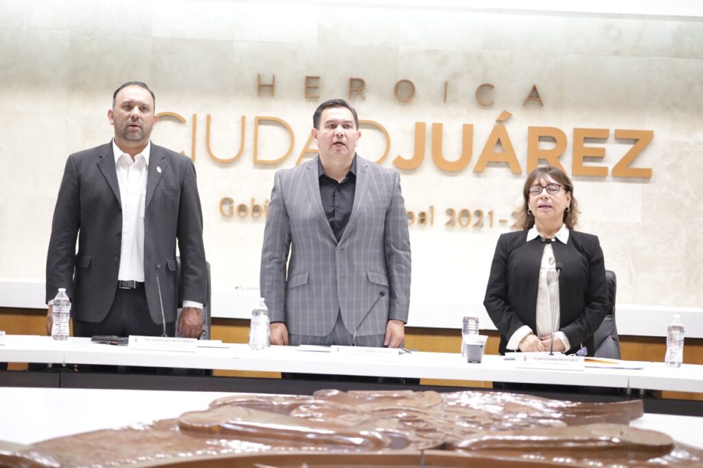 CD. JUAREZ, CHIH.- En sesión ordinaria de Cabildo número 28 presidida por el Presidente Municipal, Cruz Pérez Cuéllar, los integrantes del Ayuntamiento de Juárez aprobaron este día 12 acuerdos entre los que destaca una réplica al Congreso del Estado por no incluir al Ayuntamiento de Juárez en el Consejo Estatal de Salud, así como donativos de computadoras a la Escuela Secundaria Técnica 55 y la autorización para construir tres fraccionamientos.