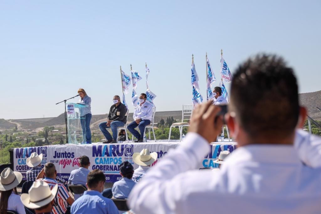 CHIHUAHUA, CHIH.- Maru Campos Galván inició su campaña a la gubernatura de Chihuahua por la coalición Nos Une Chihuahua, este domingo 4 de abril en las inmediaciones de la presa La Boquilla, para mostrar su respaldo a los productores locales en la lucha por la defensa del agua.