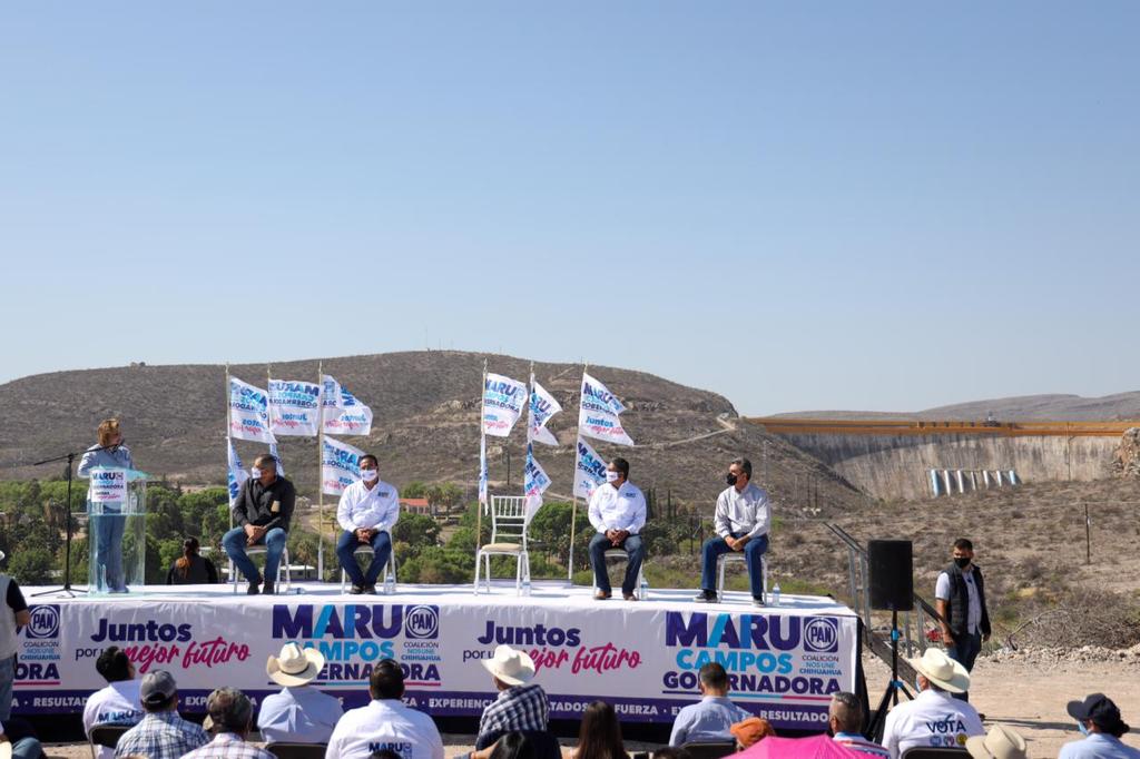 Con la cortina de la presa La Boquilla como escenario, Maru envió un mensaje a los chihuahuenses de todos los rincones del estado: “No tengo en mi vida mayor compromiso que ustedes. Toda mi vida he caminado con la aspiración de servir a mi gente, y de trabajar para que mi tierra sea un lugar más feliz para todos. He entregado todo de mi, y así lo seguiré haciendo, esa es mi vocación, y sé que ese es mi destino”.