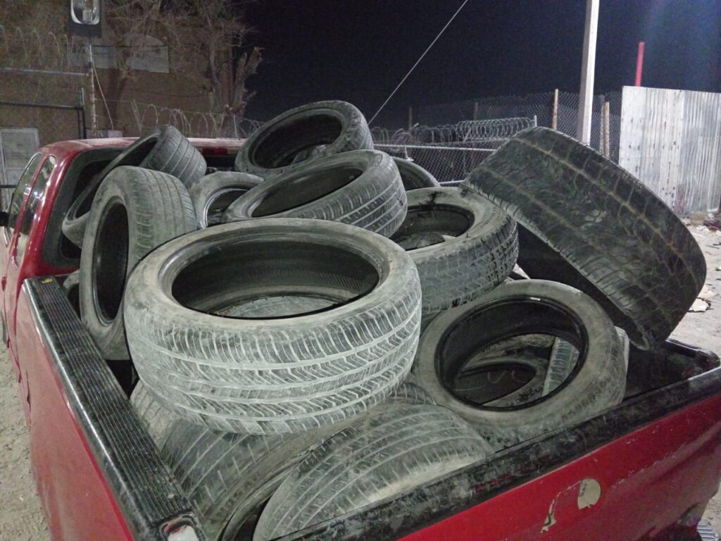 Sorprenden a dos sujetos deshaciéndose de más de 30 neumáticos usados