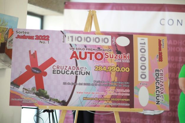 A través de la Cruzada por la Educación se llevará a cabo el Sorteo Juárez 2022, el cual consiste en la rifa de un automóvil Suzuki modelo 2022.