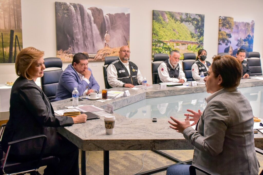 CHIHUAHUA, CHIH.- La Gobernadora sostuvo una reunión con la Coordinadora Nacional de Protección Civil y con su equipo de trabajo, con quienes dialogó sobre la relevancia de la prevención y las condiciones que guarda Chihuahua respecto a los riesgos que existen en cuanto a fenómenos naturales en la entidad.