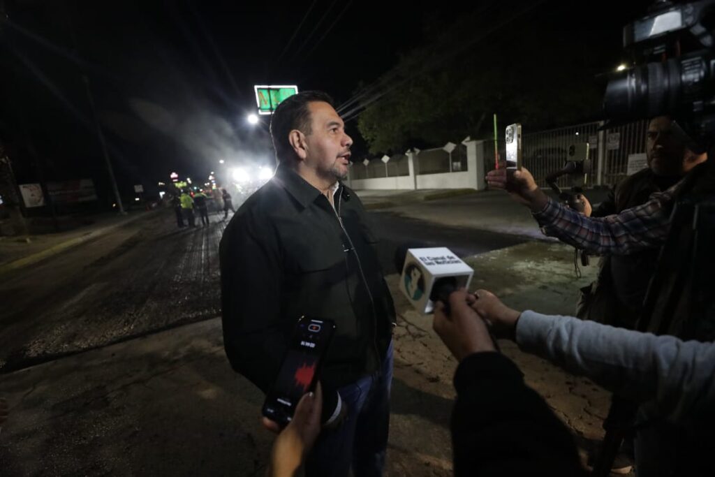CD. JUAREZ, CHIH.- El Presidente Municipal, Cruz Pérez Cuéllar, supervisó la noche del viernes los trabajos de repavimentación que se llevan a cabo en las avenidas Tecnológico y Rafael Pérez Serna, como parte del programa de mantenimiento de vialidades.