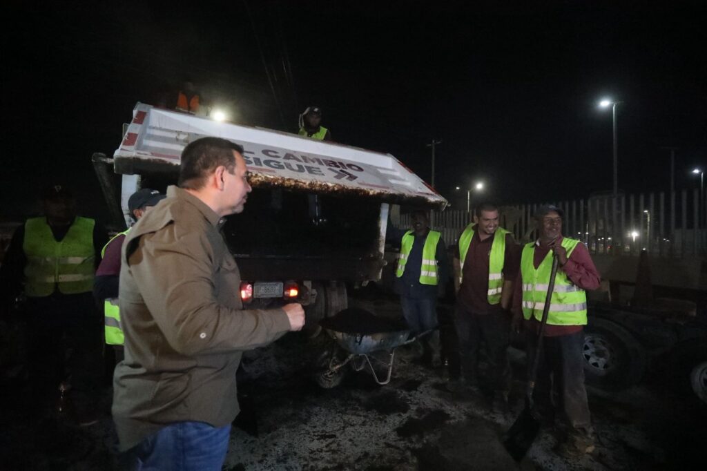 Durante esta jornada nocturna, también se concentran cuadrillas de bacheo en la calle Armando B. Chávez, Valle del Cedro y Fortín de la Soledad.