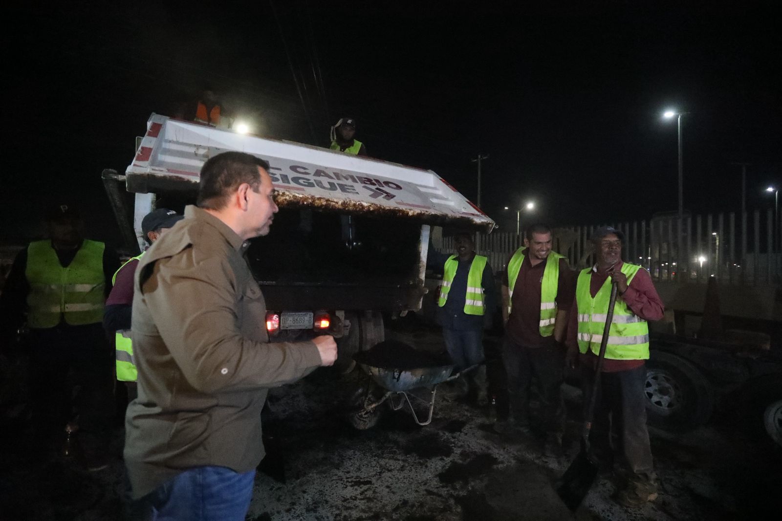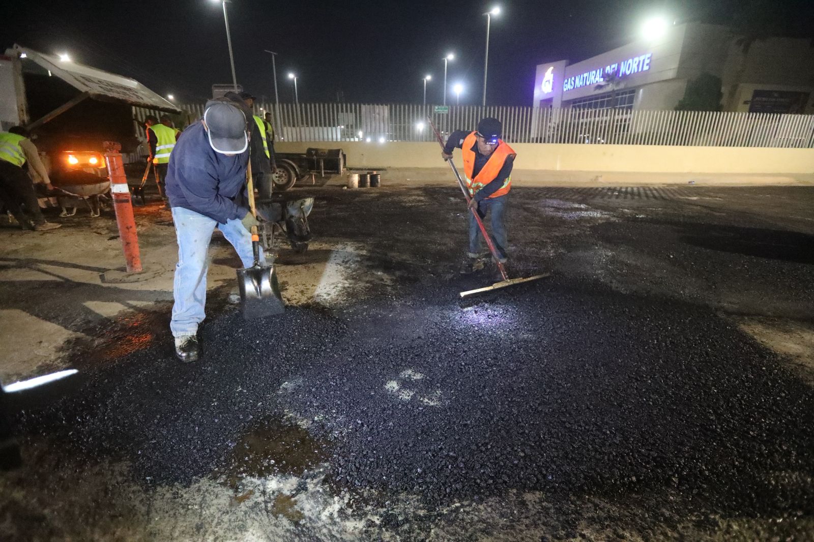 Durante esta jornada nocturna, también se concentran cuadrillas de bacheo en la calle Armando B. Chávez, Valle del Cedro y Fortín de la Soledad.