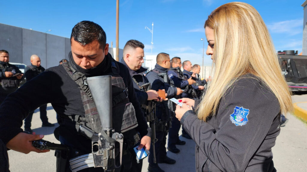 CD. JUAREZ, CHIH.- Integrantes de la Subsecretaría de Asuntos Internos de la Secretaría de Seguridad Pública del Estado (SSPE) llevaron a cabo un operativo de supervisión a los elementos de la Subsecretaría de Despliegue Policial Zona Norte, con el objetivo de revisar que todos cuenten con su porte de armas así como darles informes sobre apoyo jurídico que recibirían en caso de ser necesario.