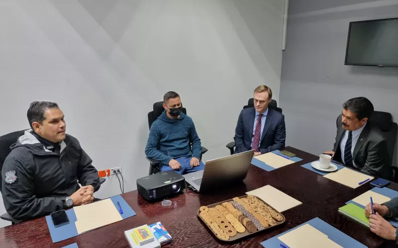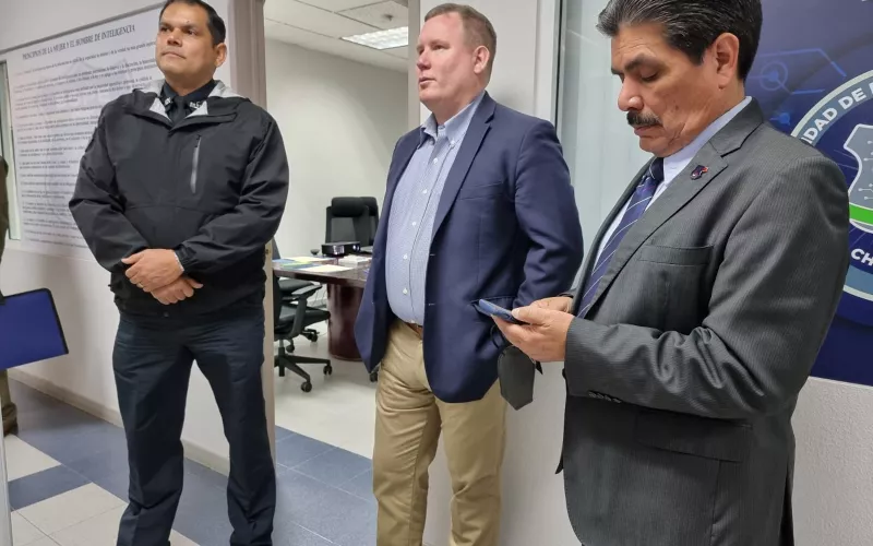 CD. JUAREZ, CHIH.- El cónsul general de Estados Unidos en Ciudad Juárez, Kent May, visitó las instalaciones de la Secretaría de Seguridad Pública del Estado (SSPE), para supervisar las estrategias de colaboración entre ambas instancias en materia de capacitación y avances tecnológicos.