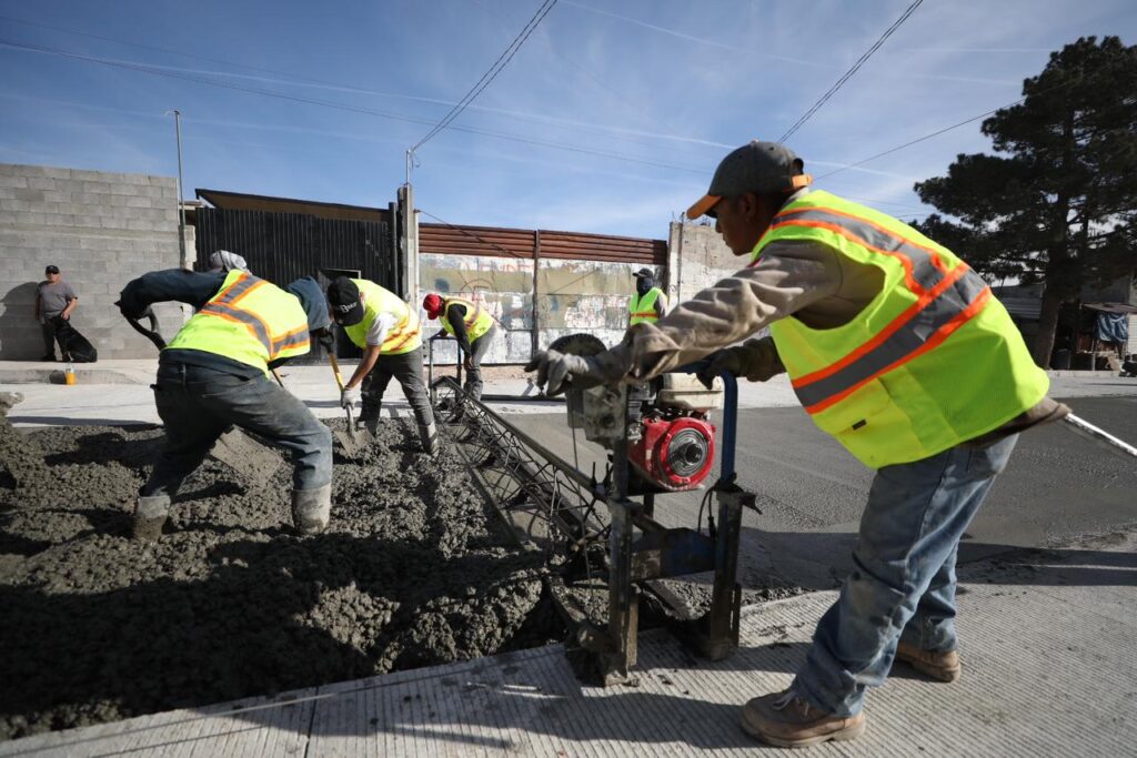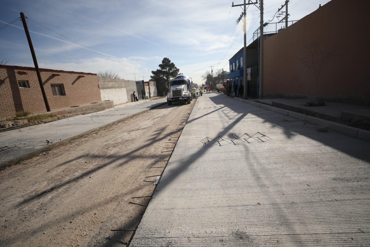 Se informó que en total son 10 vialidades las que son pavimentadas a base de concreto hidráulico en la colonia La Cuesta, así como la construcción de pozos de absorción, guarniciones y la introducción de tomas para agua potable y alcantarillado.