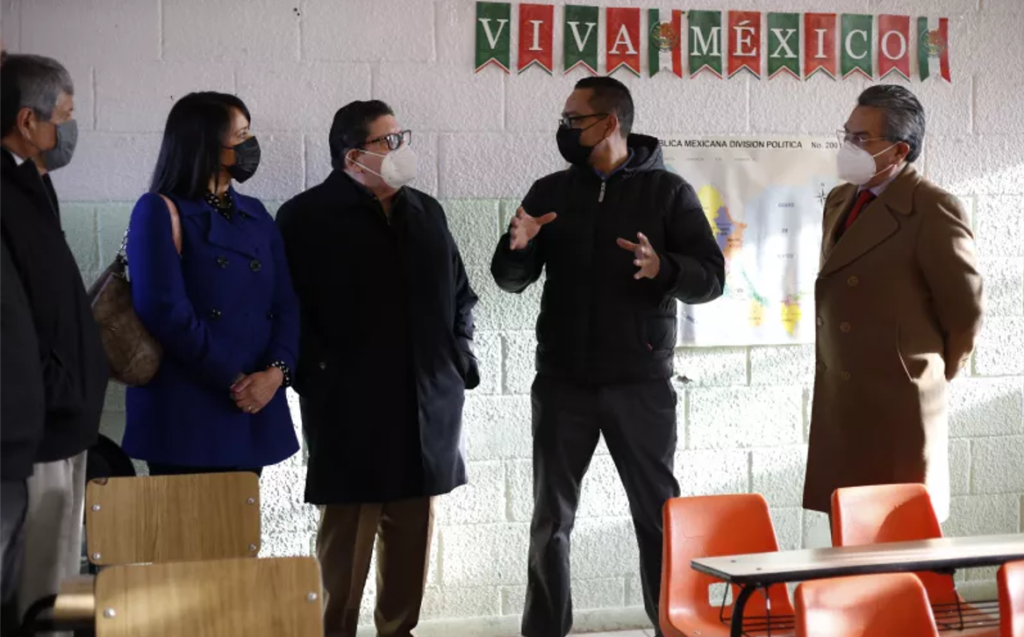 CD. JUAREZ, CHIH.- El Secretario de Educación, acompañado del Secretario de Salud, realizaron una visita a la Escuela Primaria Bellavista y recorrieron algunas de sus aulas salones para verificar las medidas sanitarias implementadas por el Consejo Estatal de Salud para el regreso a clases presenciales.