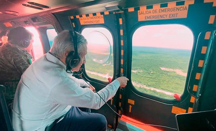 El presidente Andrés Manuel López Obrador supervisó la tarde del sábado los avances en las obras del Tren Maya y...