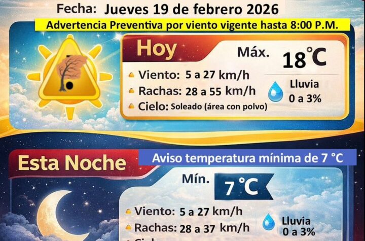 JUEVES 19 FEBRERO 2026 POR REDACCION CD. JUAREZ, CHIH.- La Dirección General de Protección Civil informó que, derivado de los...
