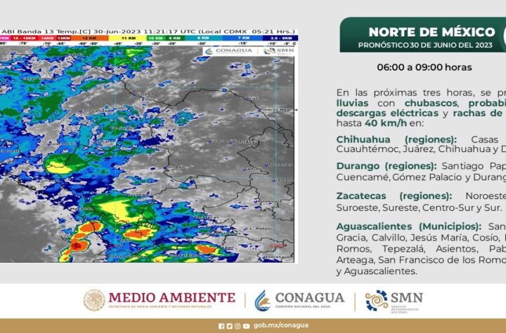 POR DIANA ARELLANO. Viernes 30 de junio de 2023. - Las precipitaciones pueden estar acompañadas de actividad eléctrica y posible...