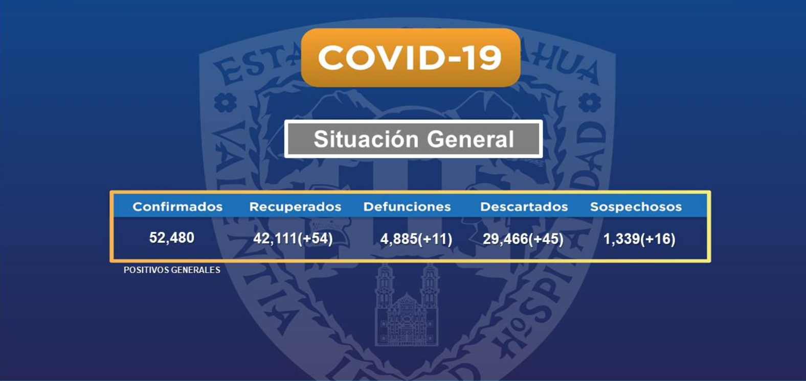 POR: REDACCION. La Secretaría de Salud reporta 4 mil 885 personas fallecidas, con 11 nuevos decesos: 3 en Chihuahua, 2...
