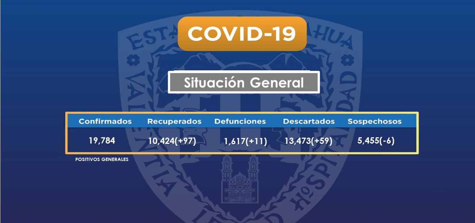 POR: REDACCION. Suman 19,784 casos confirmados de COVID-19 y fallecimientos 1,617. CHIHUAHUA, CHIH.-La Secretaría de Salud informa que el número...