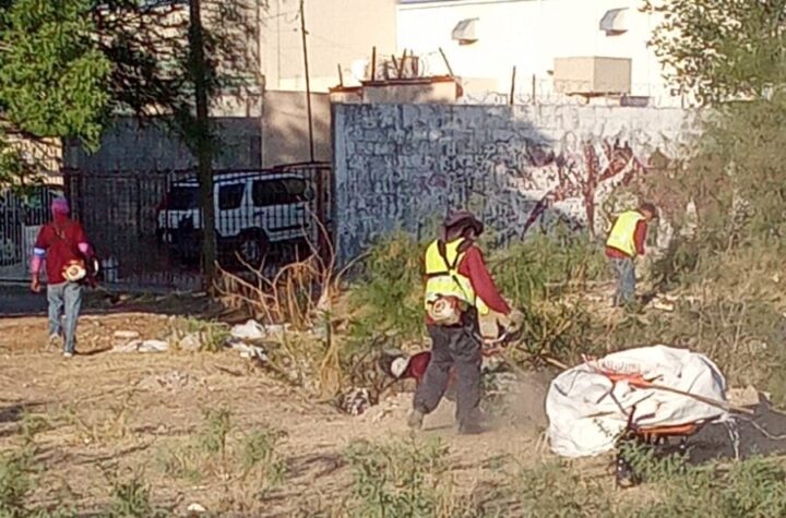 JUEVES 10 JULIO 2025 POR REDACCION CD. JUAREZ, CHIH.- Cuadrillas de la Dirección de Limpia realizaron hoy labores de destilichadero...