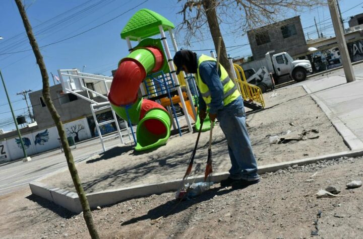 POR REDACCION Jueves 10 agosto 2023 CD. JUAREZ, CHIH.- Como parte de las tareas complementarias para mejorar los parques...