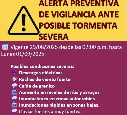 VIERNES 29 AGOSTO 2025 POR REDACCION CD. JUAREZ, CHIH.- La Dirección General de Protección Civil informó que se mantiene vigilancia...