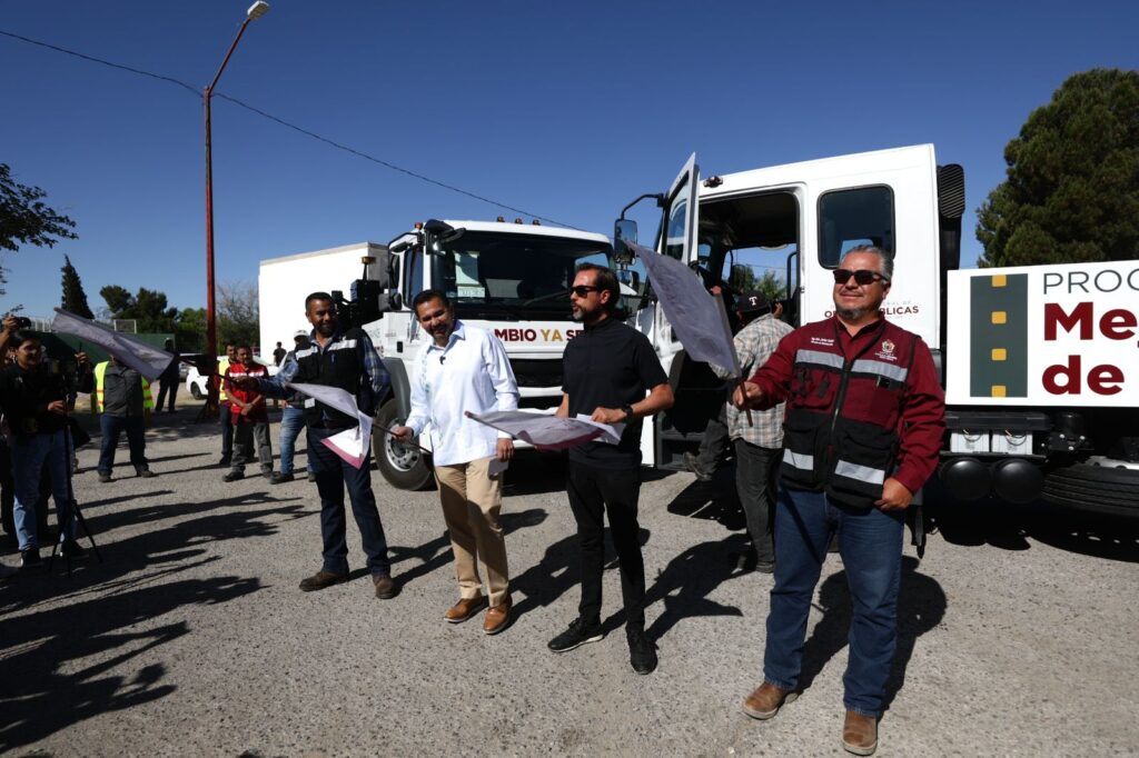 El Alcalde Pérez Cuéllar mencionó que estos son los primeros de dos camiones de seis que recibirá la dependencia este año, lo que permitirá que el Municipio sea más eficiente en los trabajos del Programa de Mejoramiento de Vialidades.