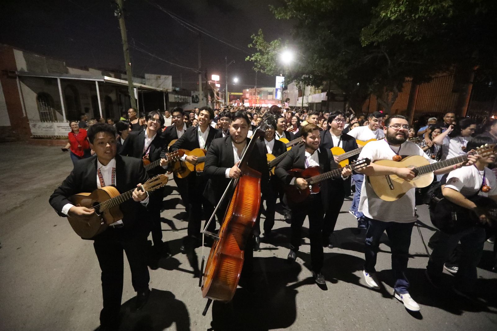 El escenario colocado a un costado del Museo Juan Gabriel recibió a las rondallas conforme iban llegando, lo que dio pie al furor de quienes allí se encontraban gustosos de poder entonar junto con las agrupaciones, las canciones del “Divo de Juárez”.
