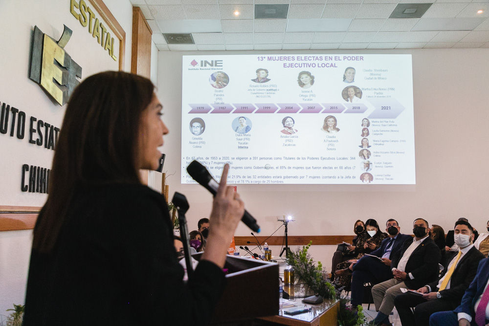 La consejera electoral del INE presentó la cronología del avance de los derechos políticos de las mujeres hasta llegar a la paridad total y resaltó la creación de la Red Nacional de Mujeres Electas, más recientemente.