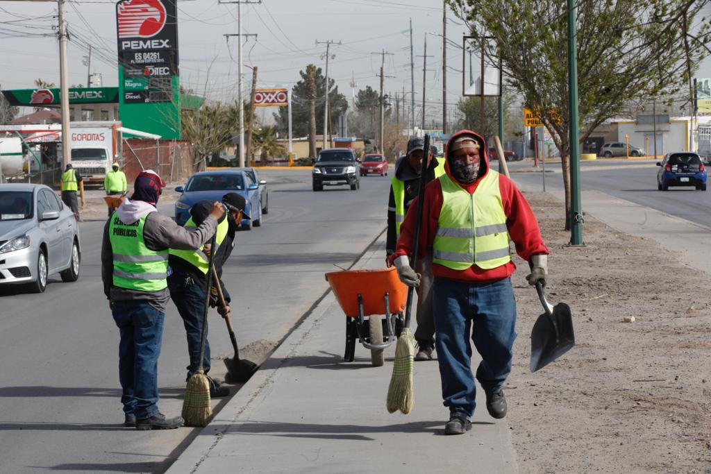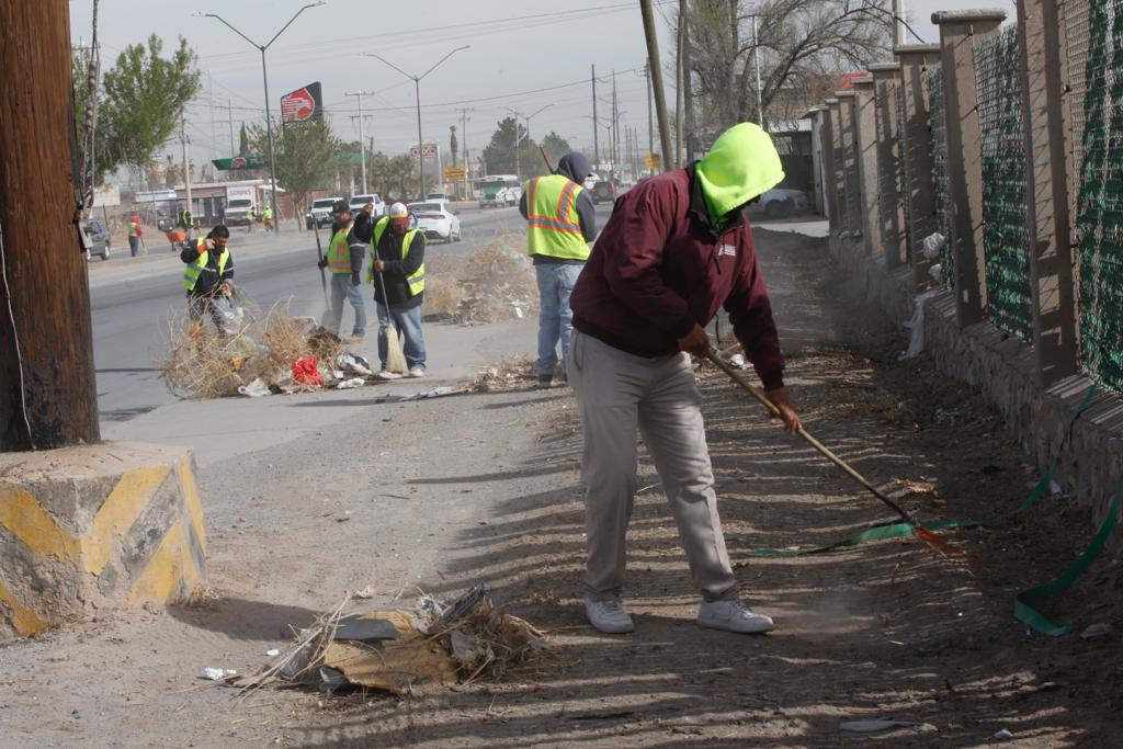 CD. JUAREZ, CHIH.- Como parte de la estrategia para mantener limpias las principales avenidas de la ciudad, trabajadores de la Dirección de Limpia se encargan este día del mantenimiento de la avenida Manuel J. Clouthier y el Arroyo de las Víboras.