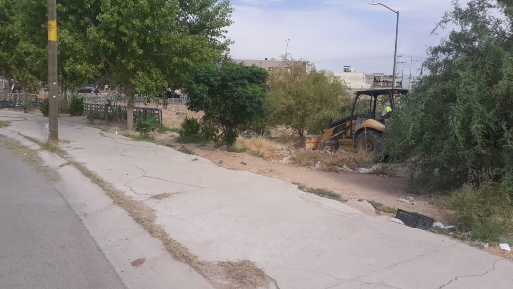 CD. JUAREZ, CHIH.- La Dirección General de Obras Públicas del Gobierno Municipal, trabaja en la limpieza de diversas estructuras pluviales de la mancha urbana, como parte de los trabajos de mantenimiento de diques y vasos de captación.
