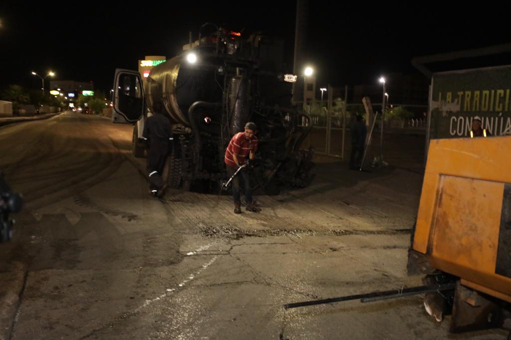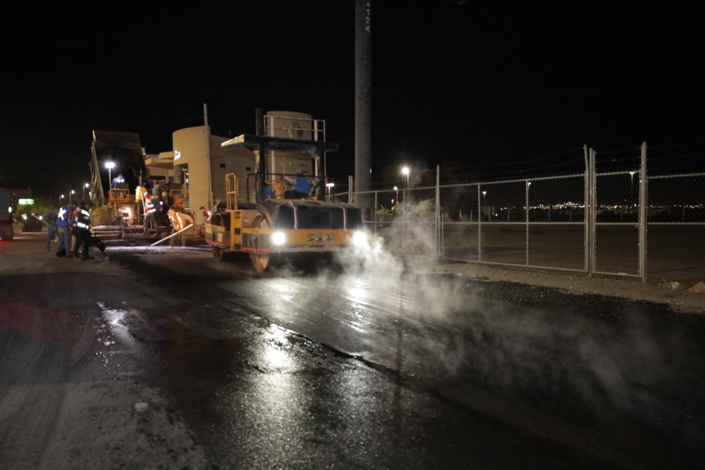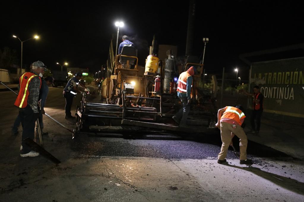 CD. JUAREZ, CHIH.- La Dirección General de Obras Públicas del Gobierno Municipal trabaja durante las noches en la repavimentación de la avenida Paseo de la Victoria, con el objetivo de aminorar los inconvenientes que esto pudiera causar a los guiadores durante el día.