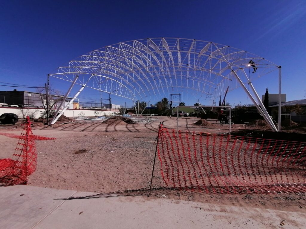 CD. JUAREZ, CHIH.- Dando continuidad a los trabajos de mejora de planteles escolares, la Dirección General de Obras Públicas trabaja en la construcción de un domo en la Escuela Primaria Arcadio González Chávez, ubicada en la calle Cuiteco y Basanoca, del fraccionamiento Roma.