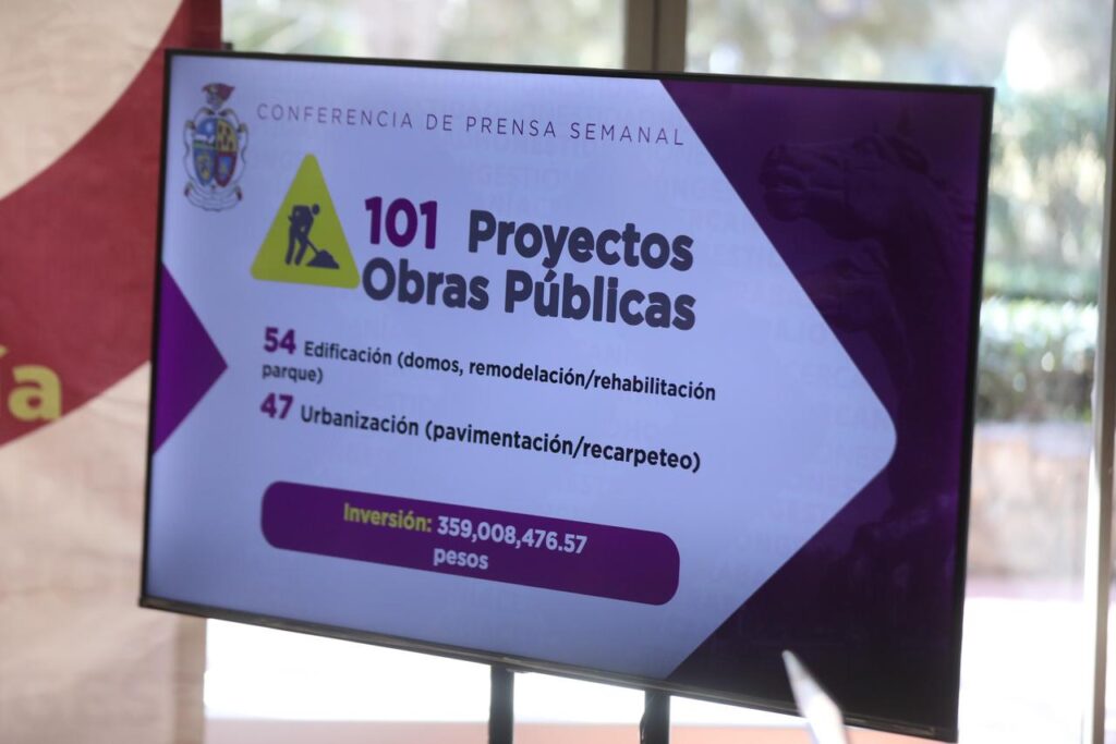 Así como la pavimentación de las calles Batalla Paredón, Camino a la Rosita, Yucatán, Fernando Villalobos, Soneto 151, Calcita, Mesa Central, Hangar, Puerto La Ceiba; la repavimentación de las vialidades Los Ojitos, Soneto 156, Puerto Alicante, María Dolores Álvarez, Parral, Valle de las Peñas y la construcción de banquetas en el Corredor Seguro Ciudad del Conocimiento.
