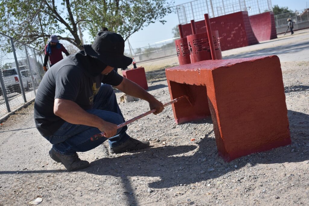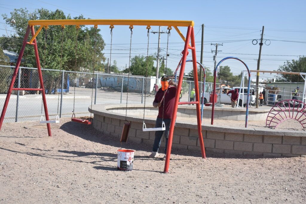CD. JUAREZ, CHIH.- Personal de la Dirección General de Servicios Públicos trabaja este martes en la rehabilitación de un parque ubicado sobre el cruce de las calles Manuel Acuña y Campeche en la colonia Salvarcar.