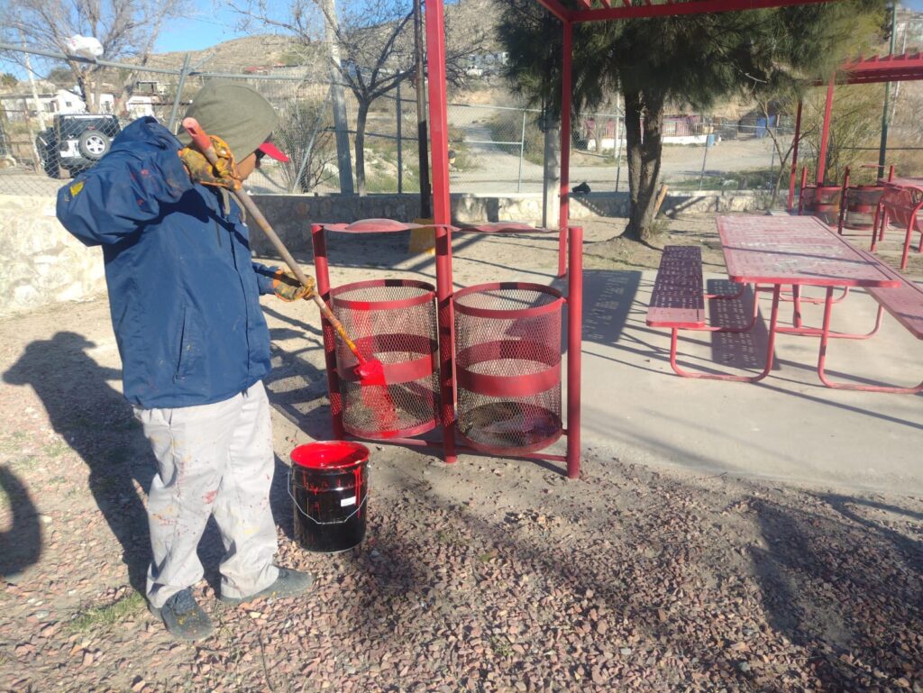 CD. JUAREZ, CHIH.- Con el objetivo de mantener en buenas condiciones los espacios públicos y brindar áreas más limpias y seguras, las cuadrillas de la Dirección de Parques y Jardines, de la Dirección General de Servicios Públicos Municipales, llevaron a cabo trabajos de mantenimiento general en el cruce de las calles Tepetate y Obsidiana, en la colonia Palo Chino.