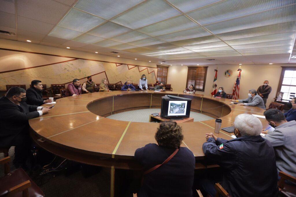 Como parte del recorrido que realizaron las autoridades federales y municipales, la comitiva visitó las instalaciones de la Comisión Internacional de Límites y Aguas (CILA), donde tuvieron otra reunión de trabajo con la comisionada mexicana, Adriana Resendez y su equipo de trabajo, quien les puso al tanto de la historia de el CILA y El Chamizal, su extensión territorial y diversos proyectos para el desarrollo y forestación de la zona.