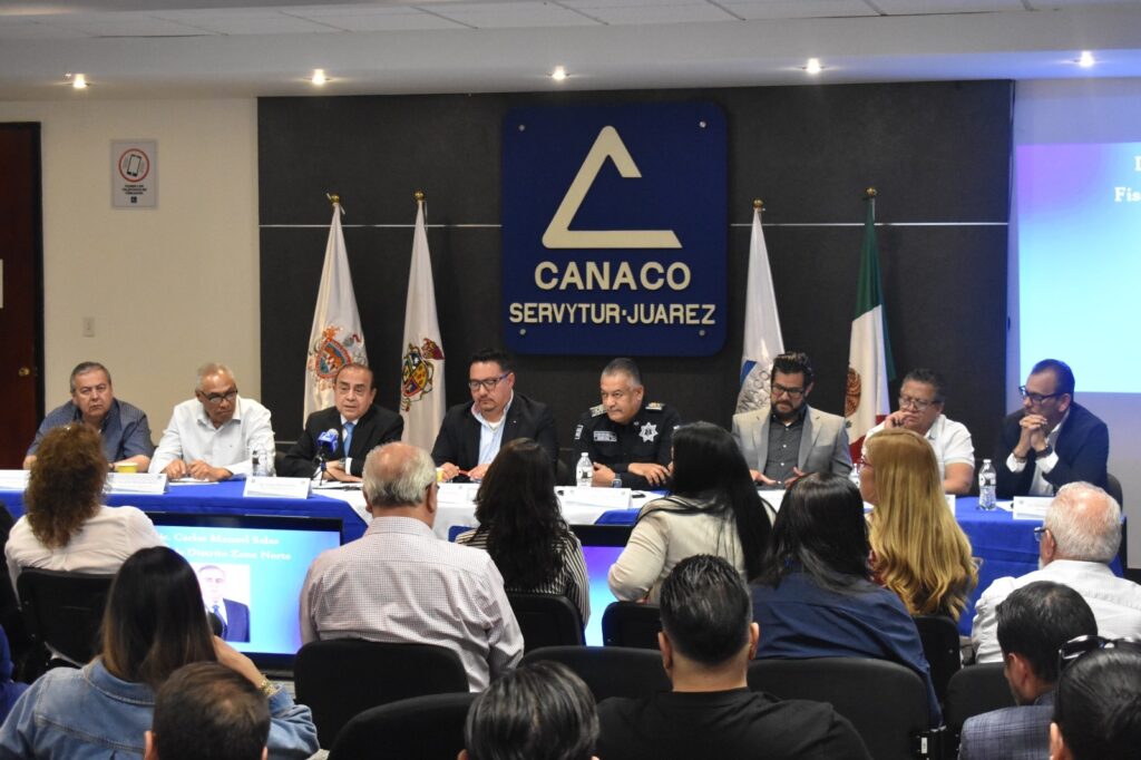 El encuentro, en el que también estuvo como invitado César Omar Muñoz Morales, Secretario de Seguridad Pública Municipal (SSPM), fue encabezado por el presidente de la Cámara Nacional de Comercio, Iván Pérez Ruiz, quien agradeció la disponibilidad de ambos servidores públicos.