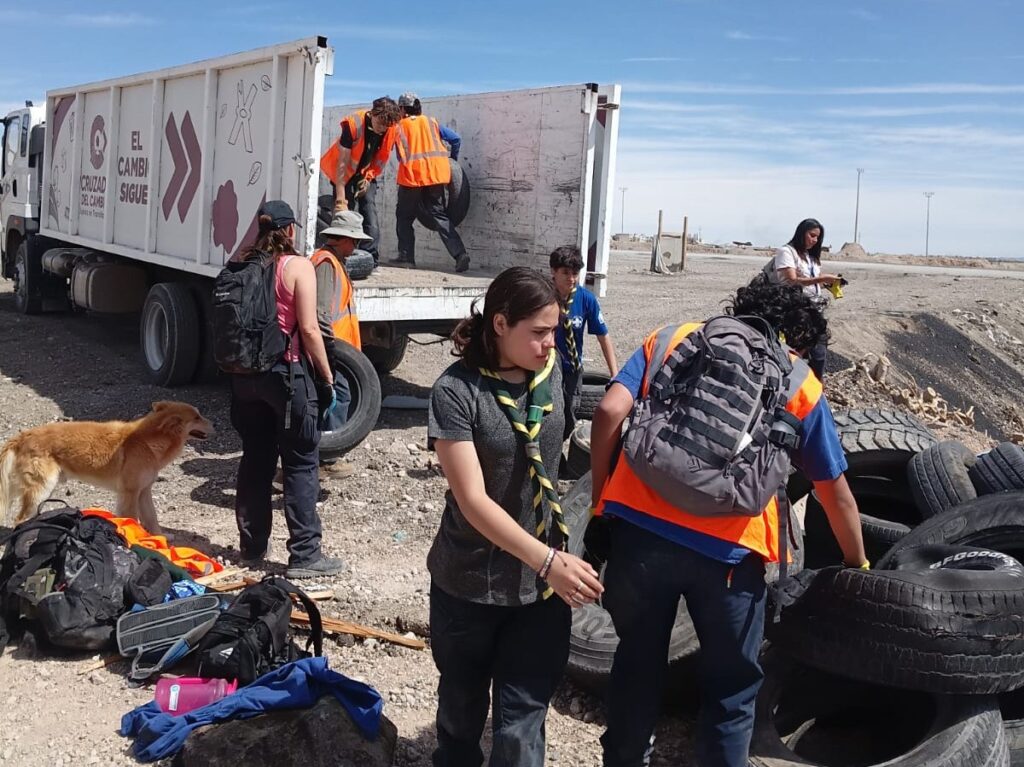 CD. JUAREZ, CHIH.-La Dirección de Limpia participó en una jornada de saneamiento en la Sierra de Juárez, brindando apoyo logístico al colectivo Sierra de Juárez para el traslado y disposición final de llantas retiradas por jóvenes voluntarios de esta zona natural.