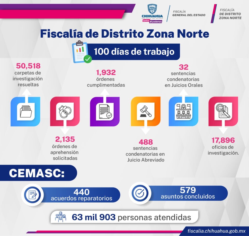 Como parte del compromiso conjunto del Fiscal General del Estado, César Jáuregui Moreno y el Fiscal de Distrito Zona Norte, Carlos Manuel Salas, tras 100 días de intenso trabajo, se logró superar el objetivo de combatir el rezago en carpetas de investigación.