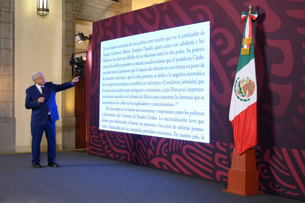 “Esto es un asunto de los mexicanos y se está resolviendo en las instituciones de nuestro país y ahí le andan buscando la forma, dándole la vuelta, se andan por las ramas diciendo: ‘no, es que como hay un tratado comercial nos podemos meter’. No. Si el tratado no es para que nosotros cedamos nuestra soberanía; el tratado es comercial, es para tener una muy buena relación económica-comercial que nos conviene a las dos naciones, pero no es para que México se convierta en un apéndice, en una colonia, en un Estado asociado”, remarcó.