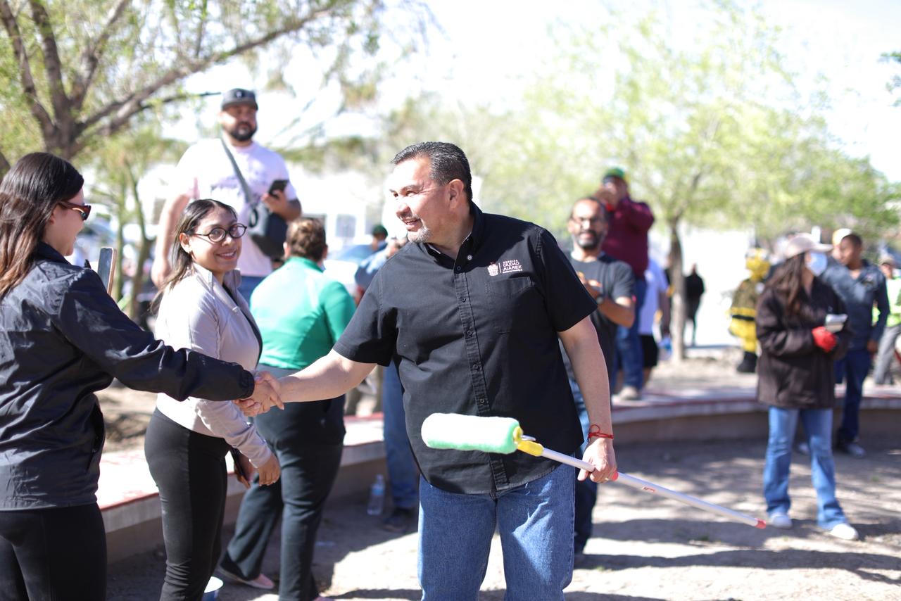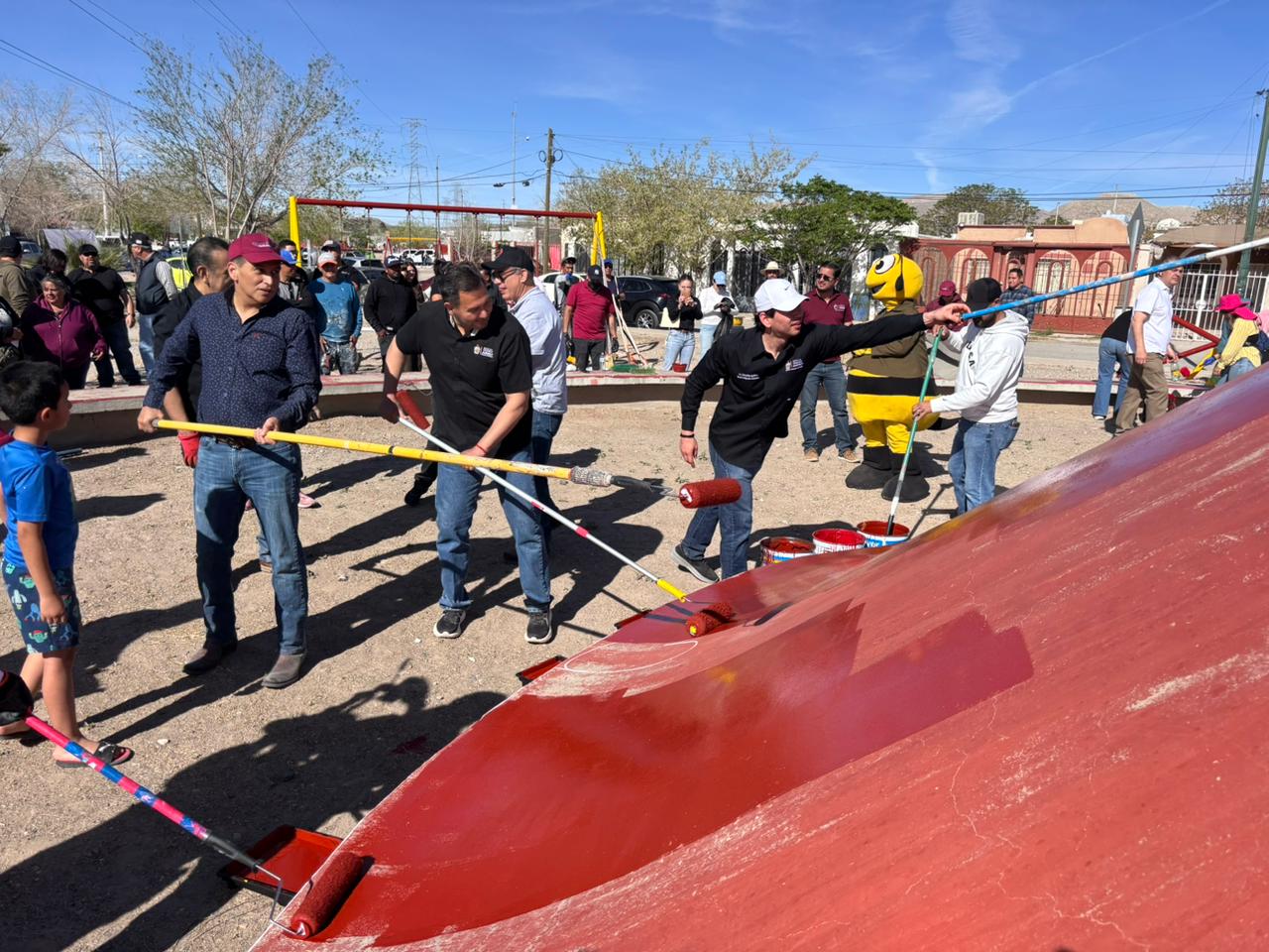 CD. JUAREZ, CHIH.- Empleados municipales y vecinos de la colonia Praderas del Pacífico se unieron a las labores de limpieza y rehabilitación de los parques del sector como parte del programa Juárez Amanece Limpio, con el objetivo de mejorar los espacios públicos y fortalecer la convivencia comunitaria.