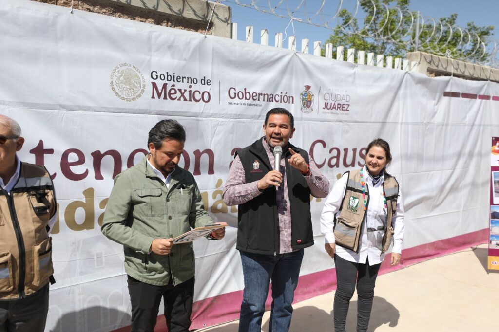 CD. JUAREZ, CHIH.- El Presidente Municipal, Cruz Pérez Cuéllar y el director general del Instituto Mexicano del Seguro Social (IMSS), Zoé Robledo Aburto, visitaron la colonia Sierra Vista, con el propósito de conocer las labores que se realizan de manera conjunta esta semana, previo a la “Cruzada por Juárez, Atención a las Causas, Juárez por la Paz” del próximo sábado.
