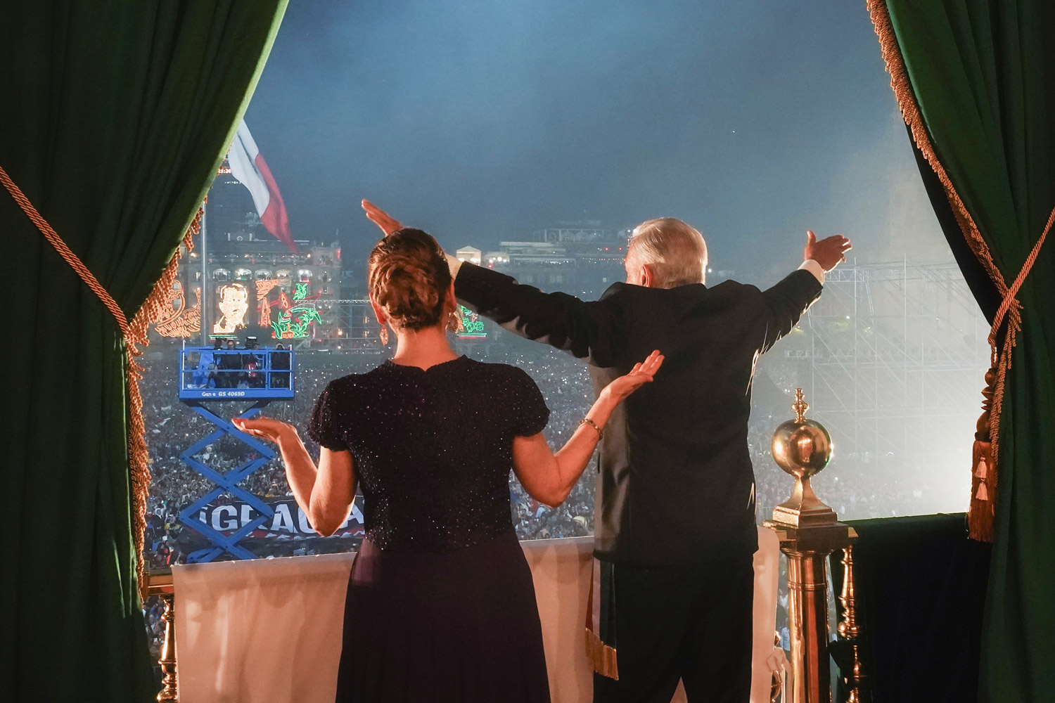 En el balcón presidencial de Palacio Nacional, el mandatario exclamó alrededor de las 23:00 horas la tradicional arenga en el balcón presidencial de Palacio Nacional:
